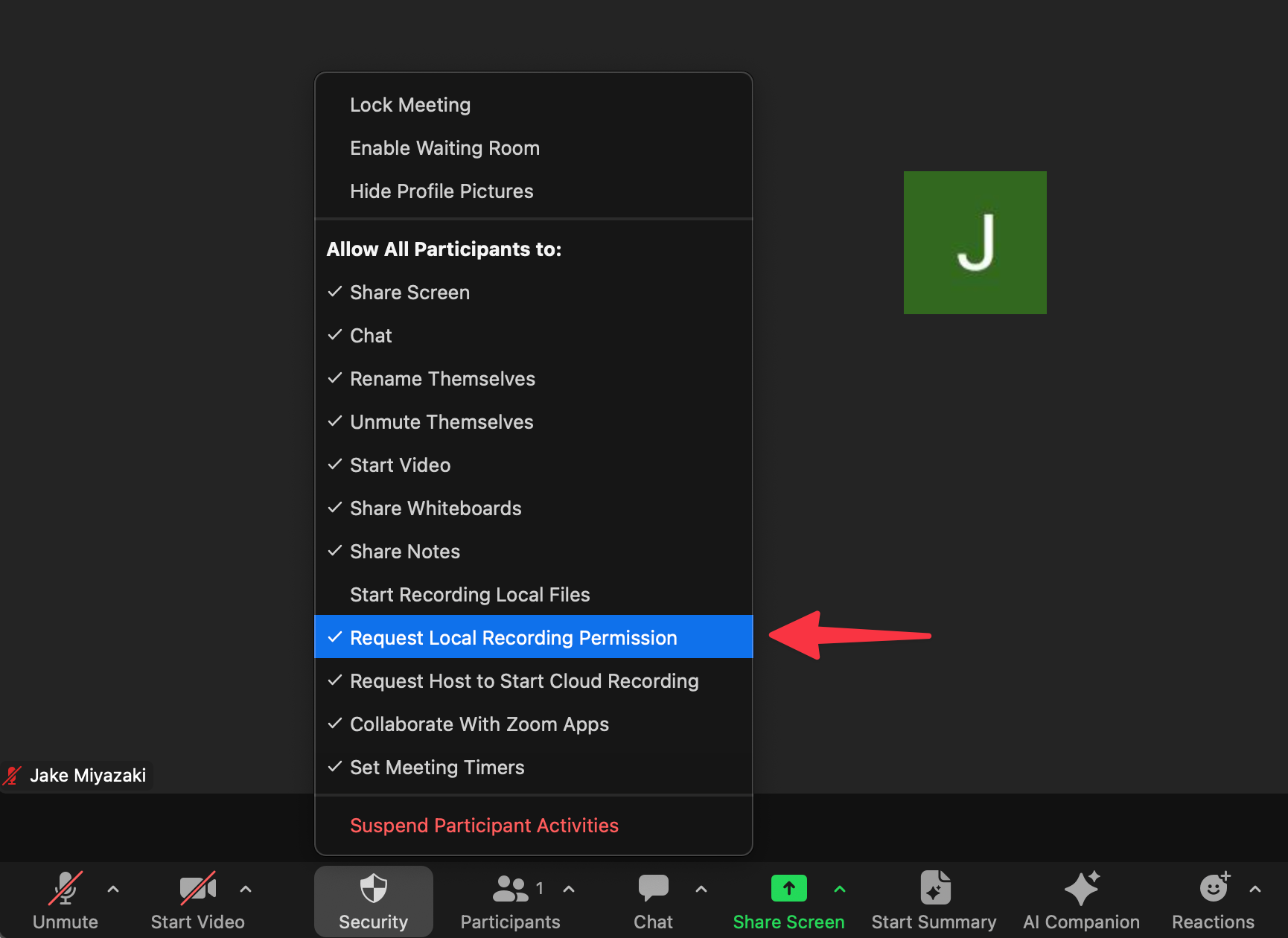 The host has disabled permitting participants to record locally